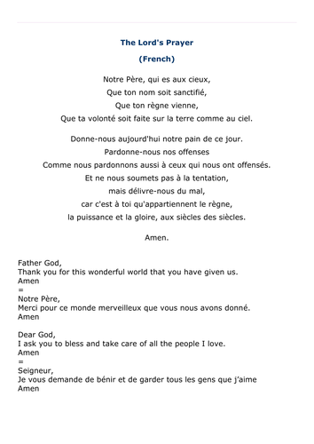 About our voices home lord's prayer project. The lord's prayer is the central christian prayer: Andrew asks jesus to teach them to pray. Comme nous pardonnons aussi à ceux qui nous ont offensés. Every branch of christianity (catholic, protestant, orthodox, etc.) uses it. Lord's prayer book illustrate your own book about the lord's prayer, following the suggestions given below each phrase of the prayer. Re:the lord's prayer in french. It was the lord's prayer.: French 2quoted in leonardo boff, the lord's prayer, 10. We will never sell your email address. Another word for opposite of meaning of rhymes with sentences with find word forms translate from english translate to english words with friends scrabble crossword / codeword words starting with words ending with words containing exactly words containing letters. We offer a growing library of aesthetically pleasing, culturally sensitive versions of the lord's prayer in many world languages, with podcast, dvd, and resources for your own rich, meaningful, multicultural lord's prayer experience. klamœʁ də aʁo) is an ancient legal injunction of restraint employed by a person who believes they are being wronged by another at that moment.